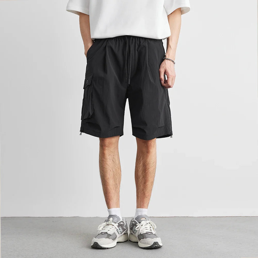 Built for comfort and everyday function, the Jiro Shorts combine a utilitarian silhouette with lightweight fabric for warm-weather ease. Featuring side cargo pockets and adjustable hems, they deliver practicality without compromising style.