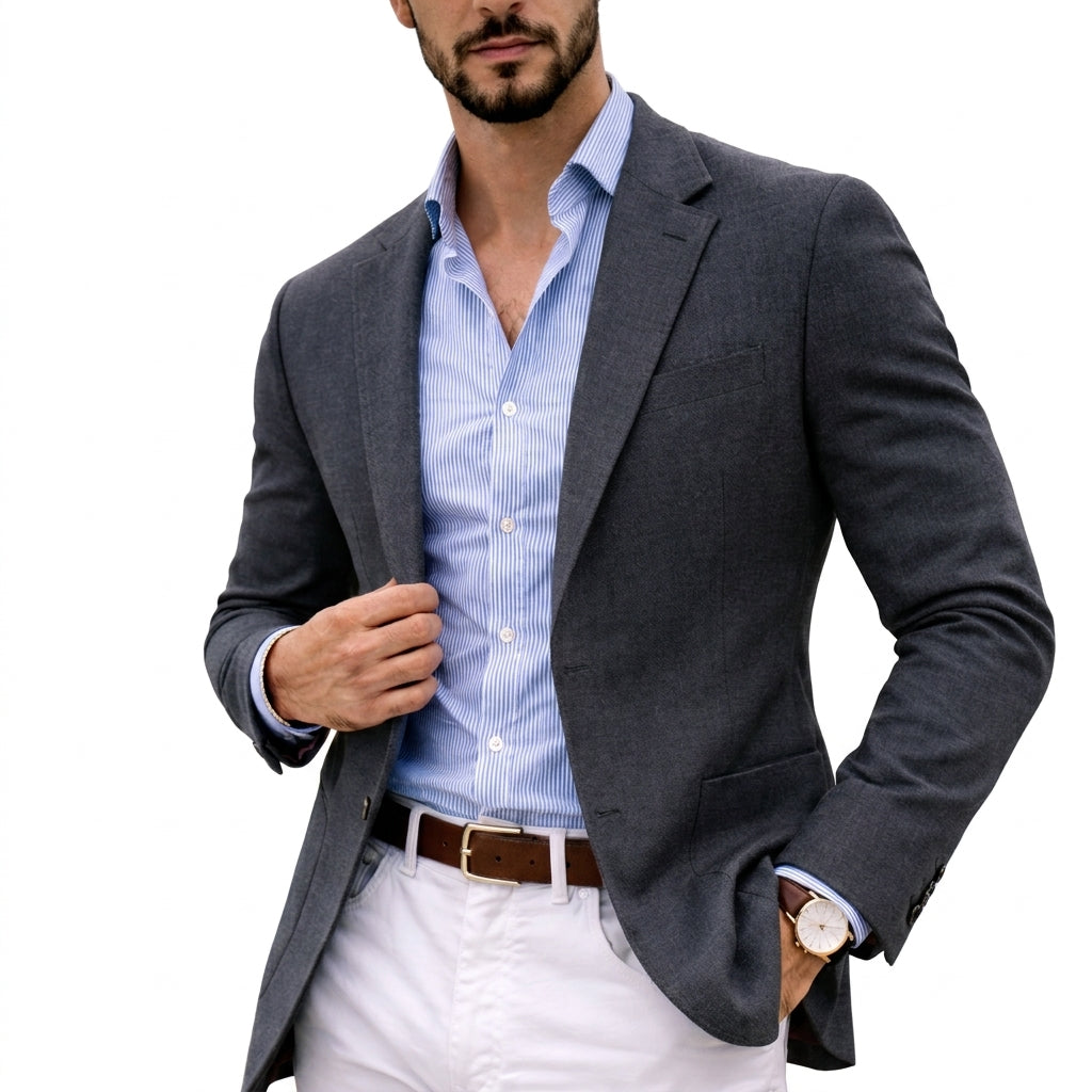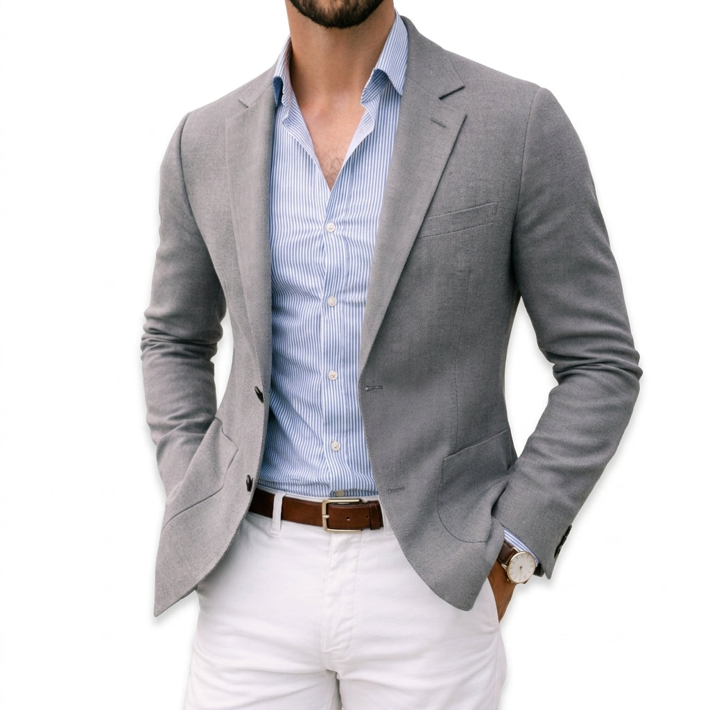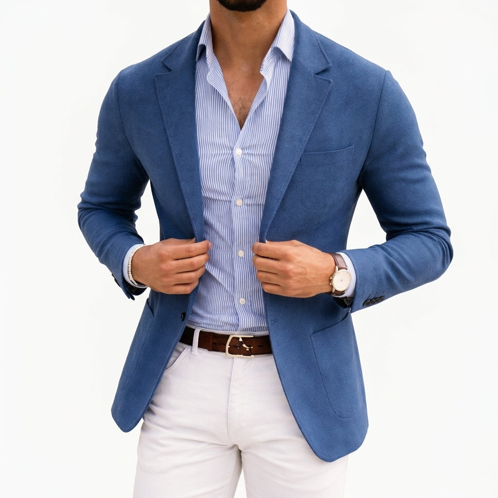 Crafted from a luxurious blend of soft, breathable fibers, the Thomas Knit Blazer offers a refined silhouette that feels as good as it looks. Its smooth texture drapes effortlessly, making it an ideal choice for both casual and formal settings, while the notch lapel adds a timeless elegance.